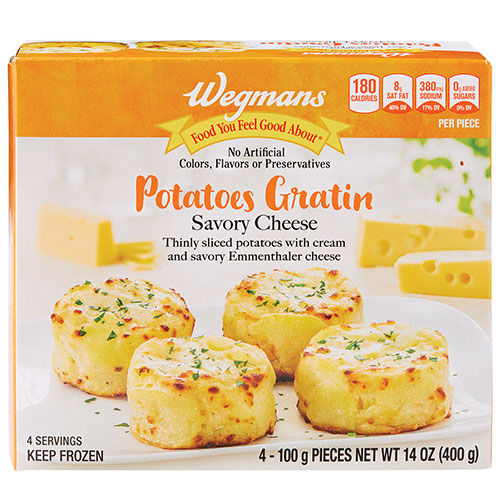 - - *MADE WITH NO GLUTEN-CONTAINING INGREDIENTS - - <strong><strong>Ingredients: Potatoes, Cream, Emmenthaler Cheese</strong> </strong>(Pasteurized Whole Milk, Lactic Acid Starter Culture, Salt, Enzymes)<strong>, <strong>Salt, Modified Cellulose, Natural Garlic Flavor, Spices</strong></strong> (White Pepper, Nutmeg)<strong>. Grilling Instructions: Preheat grill to MED. Remove wrap. Place pan on upper rack, off direct heat. Grill lid closed 13-15 min.</strong>