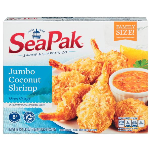 SHRIMP, ENRICHED BLEACHED WHEAT FLOUR (BLEACHED WHEAT FLOUR, NIACIN, REDUCED IRON, THIAMINE MONONITRATE, RIBOFLAVIN, FOLIC ACID), BREADCRUMBS (ENRICHED BLEACHED WHEAT FLOUR [WHEAT FLOUR, NIACIN, REDUCED IRON, THIAMINE MONONITRATE, RIBOFLAVIN, FOLIC ACID], LEAVENING [SODIUM ACID PYROPHOSPHATE, SODIUM BICARBONATE], DEXTROSE, SALT, MONOGLYCERIDES [EMULSIFIER], YEAST, EXTRACTIVES OF PAPRIKA [COLOR], DOUGH CONDITIONERS [ASCORBIC ACID, L-CYSTEINE MONOHYDROCHLORIDE], SPICE EXTRACTIVES), COCONUT, SUGAR, YELLOW CORN FLOUR, MODIFIED FOOD STARCH, SALT, LEAVENING (SODIUM BICARBONATE, SODIUM ALUMINUM PHOSPHATE), WATER, CHILI PEPPER, ONION POWDER, XANTHAN GUM, DEHYDRATED PINEAPPLE JUICE, DRIED BEER (FROM MALTED BARLEY, HOPS, YEAST), MALTODEXTRIN, NATURAL FLAVORS, SUCRALOSE, SODIUM TRIPOLYPHOSPHATE (TO RETAIN MOISTURE). SAUCE (WATER, SUGAR, DISTILLED VINEGAR, MODIFIED CORN STARCH, SALT, DEHYDRATED GARLIC, SPICES, XANTHAN GUM). CONTAINS: SHRIMP, WHEAT, COCONUT