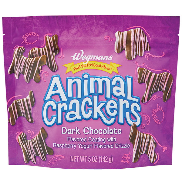 Wegmans Dark Chocolate Animal Crackers with Raspberry Yogurt Flavored Drizzle Coating
