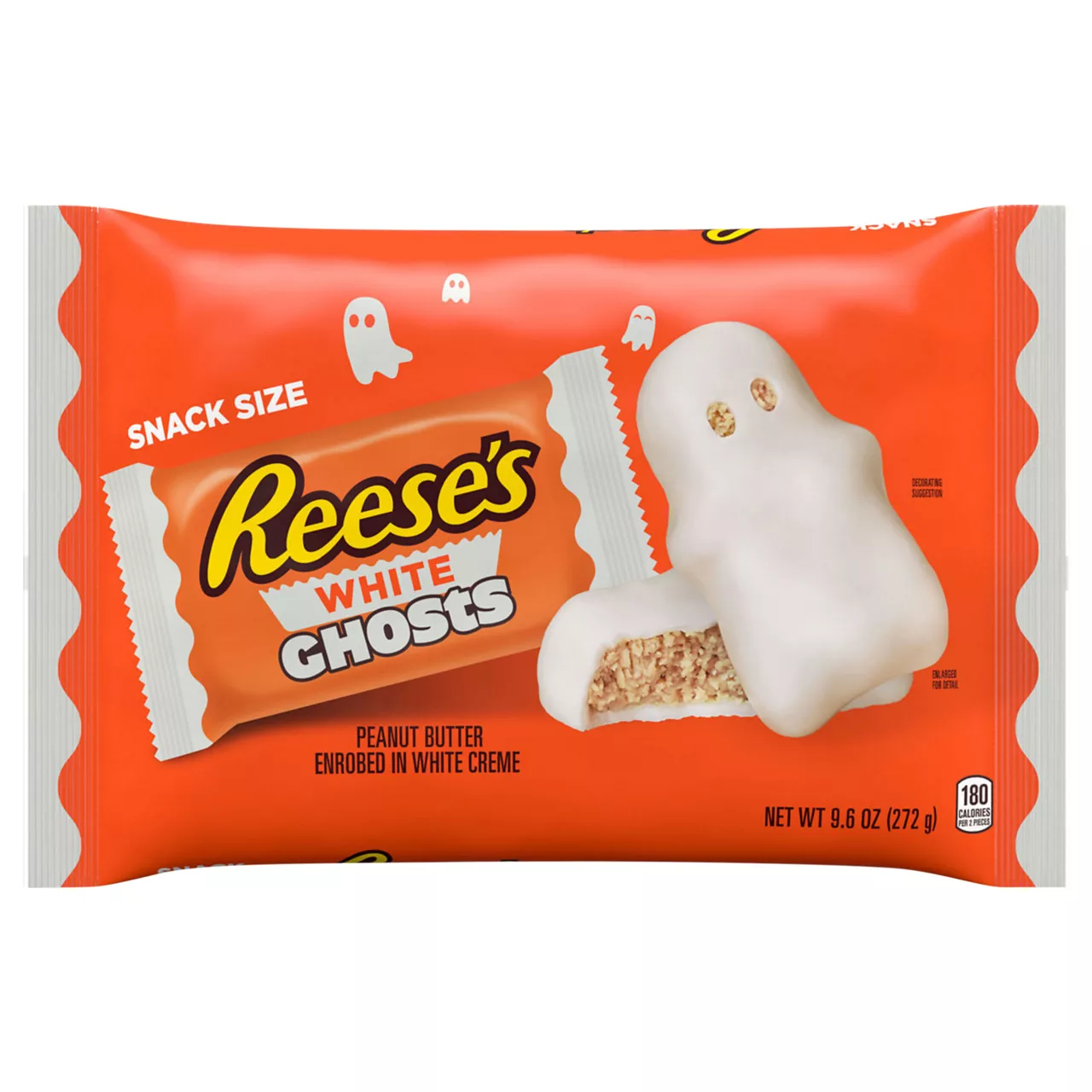 Contains one (1) 9.6-ounce bag of REESE'S White Creme Snack Size Peanut Butter Trees Candy Fill holiday candy dishes and gift baskets with REESE'S peanut butter trees or pack them inside lunch boxes and kitchen pantries for a midday treat Certified kosher, individually wrapped snack size peanut butter and white creme trees packed in a festive holiday bag Celebrate New Year's, winter birthdays and date nights with REESE'S peanut butter candies Make life at home sweeter by using REESE'S candies as Christmas stocking stuffers, holiday baking supplies and festive centerpieces Place holiday-themed REESE'S white creme peanut butter trees on top of cookies or brownies for an extra sweet, decadent addition to your Christmas desserts