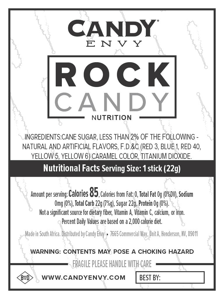 Black Cherry Flavored Rock Candy Crystal Sticks - Tub of 36