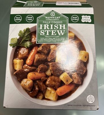 Tender USDA choice beef slow cooked with fresh potatoes, carrots & pearl onions in Ruprecht's savory brown gravy.