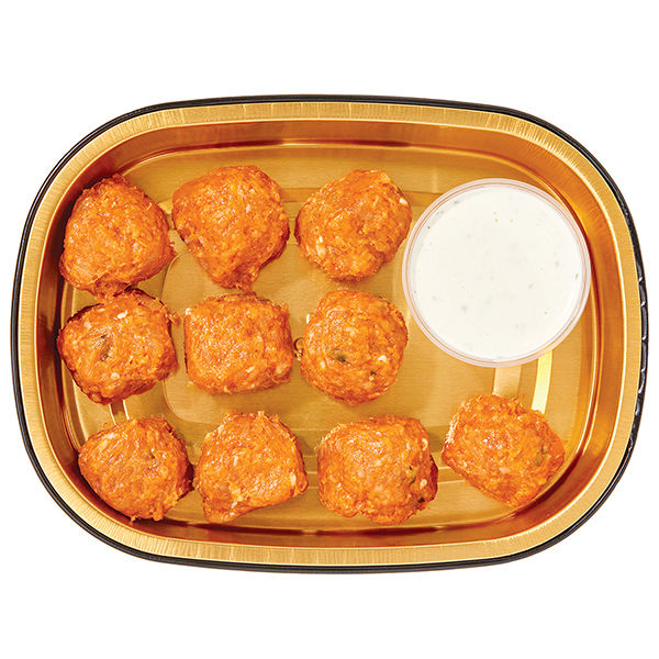 CHICKEN, WATER, BREADING (WHOLE WHEAT FLOUR, WHEAT FLOUR, CANOLA OIL, SALT, YEAST, MALTED BARLEY FLOUR, ASCORBIC ACID), SOYBEAN OIL, PREDUST (WHEAT FLOUR, WHEAT GLUTEN, SALT), PART-SKIM MOZZARELLA CHEESE (PASTEURIZED PART-SKIMMED COW'S MILK, CHEESE CULTURE, SALT, ENZYMES, CALCIUM PROPIONATE [PRESERVATIVE]), CAYENNE PEPPER PUREE (CAYENNE PEPPER, SALT, VINEGAR), BATTER (WHEAT FLOUR, DEGERMINATED YELLOW CORN FLOUR, CORNSTARCH, ONION POWDER, GARLIC POWDER, SALT, YEAST EXTRACT), PASTEURIZED PROCESS BLUE CHEESE (CULTURED MILK, CREAM, SKIM MILK, SODIUM PHOSPHATES, SALT, ENZYMES, PENICILLIUM ROQUEFORTII), SEASONING (SOY PROTEIN ISOLATE, NONFAT DRY MILK, SALT, HYDROLYZED SOY AND WHEAT PROTEIN, SODIUM PHOSPHATE, DEXTROSE, ONION POWDER, SPICE EXTRACTIVES), MODIFIED FOOD STARCH, GRATED PARMESAN CHEESE (COW'S MILK, CHEESE CULTURE, SALT, ENZYMES, CALCIUM PROPIONATE [PRESERVATIVE]), VINEGAR, NATURAL FLAVORS, CITRIC ACID, SODIUM PHOSPHATE, GLAZE (CORN SYRUP SOLIDS, MODIFIED CORNSTARCH, GUAR GUM), BLUE CHEESE (MILK, CHEESE CULTURES, SALT, ENZYMES, PENICILLIUM ROQUEFORTII), XANTHAN GUM, POTASSIUM SORBATE (PRESERVATIVE), SODIUM BENZOATE (PRESERVATIVE), BUTTER FLAVOR (MALTODEXTRIN, MODIFIED FOOD STARCH, NATURAL FLAVOR [WITH MILK]).