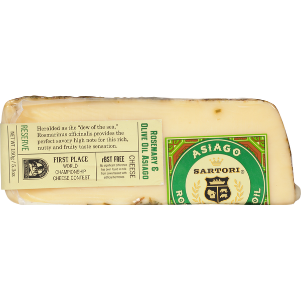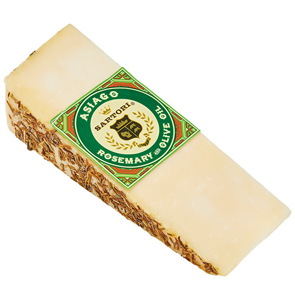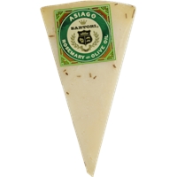 An aromatic burst of rosemary coupled with the earthy flavor of olive oil lends a new dimension to this Sartori asiago cheese. The rind is meant to be eaten and a part of the tasting experience.