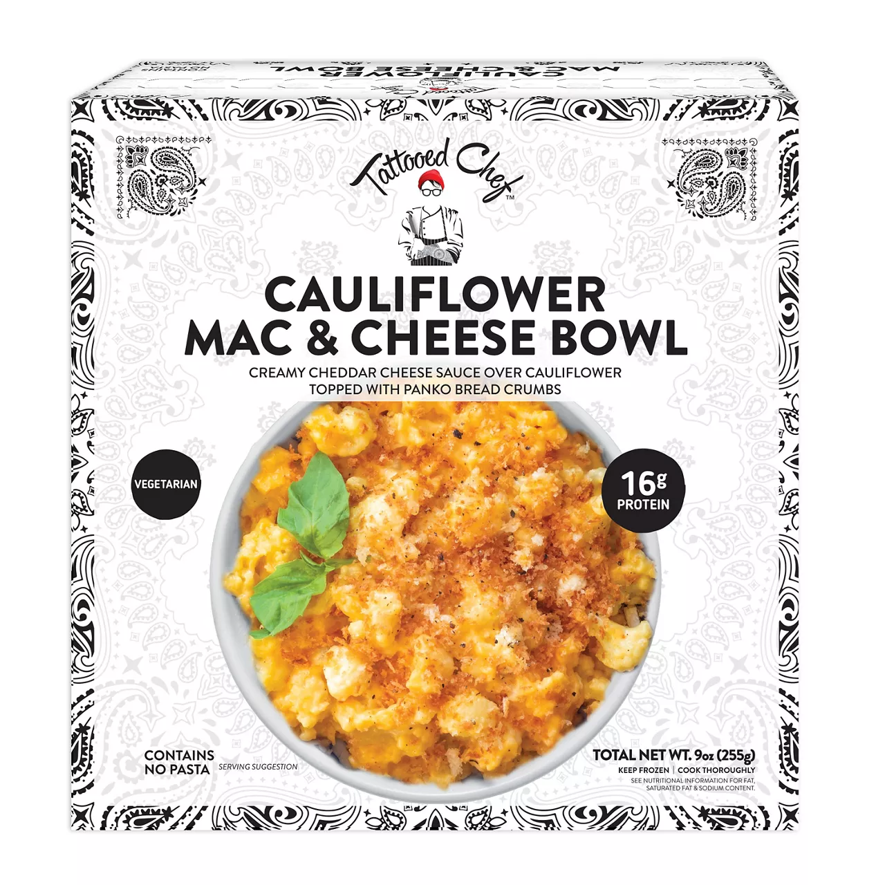 Tattooed Chef Creamy Cheddar Cheese over Cauliflower topped with Panko Bread Crumbs