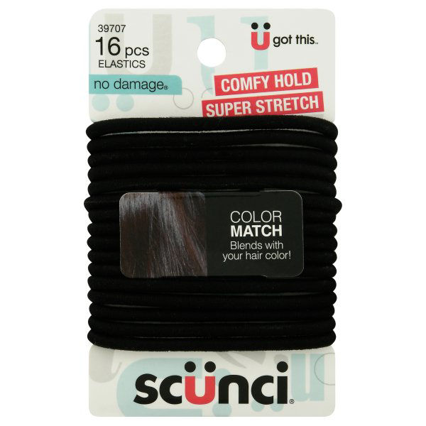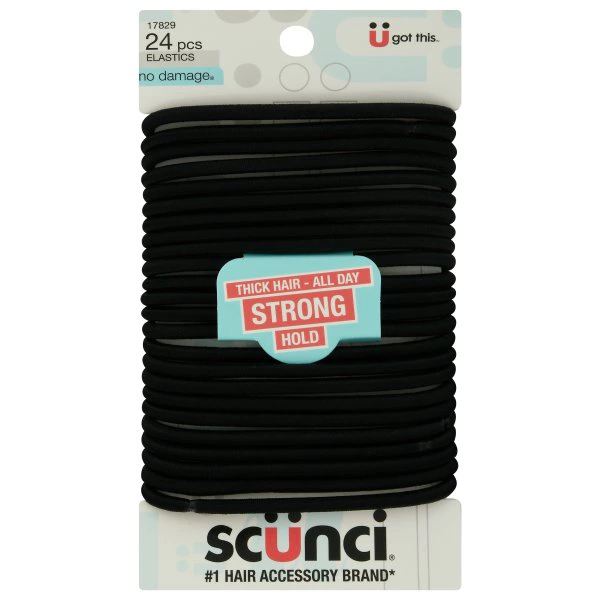 Keep your hair pulled back and away from your face with these Scunci No Damage Hair Ties. They feature a soft, yet durable fabric covering with stretchable elastic that expands and contracts to offer a firm, long-lasting hold. They also offer a comfortable and personalized fit. These elastic hair ties contain no metal parts so they will not pull, grab or damage your hair like other brands. Additionally, they retain their shape after each use and are easy to wear. These Scunci No Damage Hair Ties...