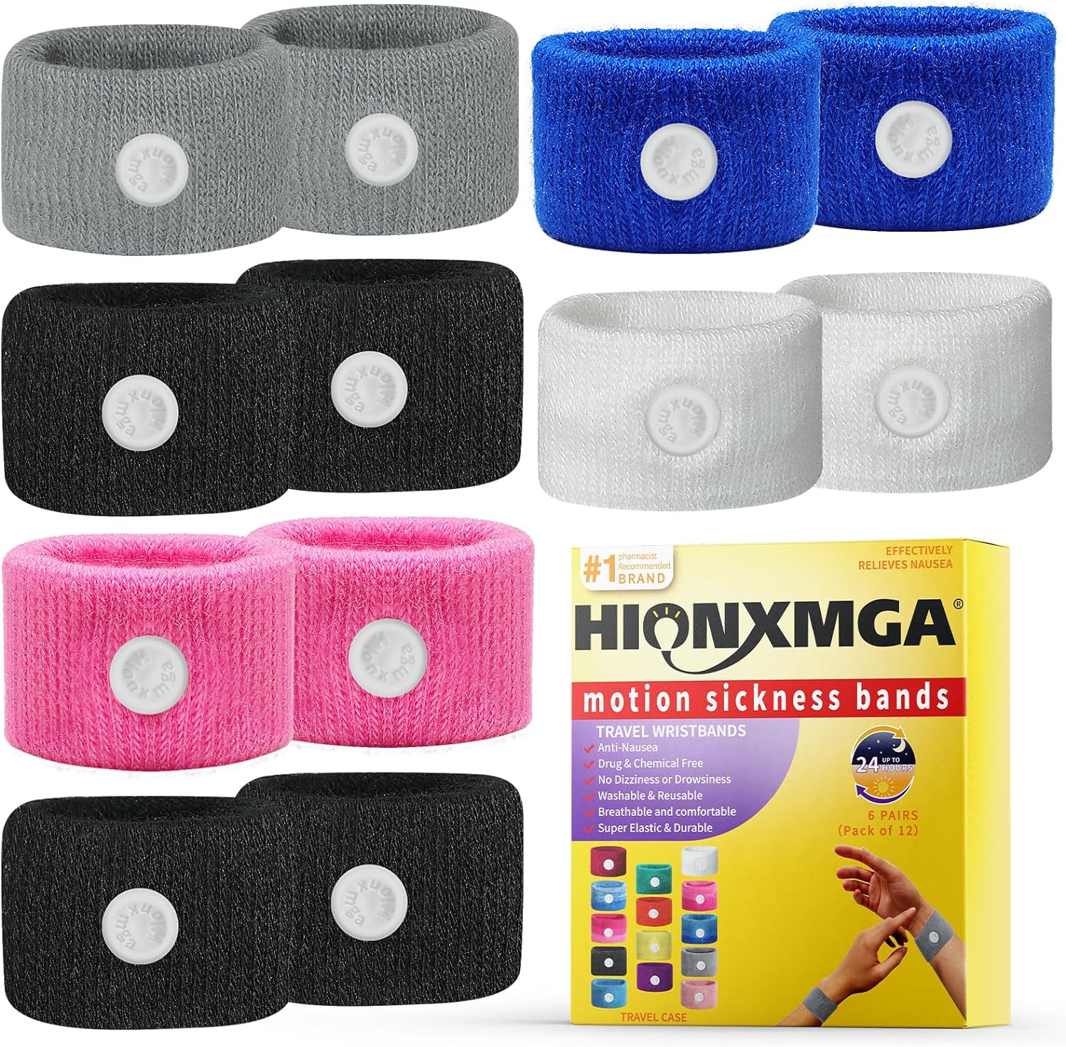 Motion Sickness Bands for Adults and Kids Anti-Nausea Acupressure Wristband for Car Sea Fly Travel Sickness Morning Sickness Relief for Pregnant Women Gift - 6 Pairs