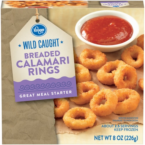 SQUID, BLEACHED WHEAT FLOUR, SOYBEAN OIL, WATER, WHEAT FLOUR, CORNSTARCH, POWDERED EGG WHITES, YELLOW CORN FLOUR, CONTAINS LESS THAN 2% OF THE FOLLOWING: SALT, SUGAR, ENRICHED WHEAT FLOUR (WHEAT FLOUR, NIACIN, REDUCED IRON, THIAMINE MONONITRATE, RIBOFLAVIN, FOLIC ACID), MODIFIED CORNSTARCH, GARLIC POWDER, YEAST EXTRACT, WHEY POWDER (A MILK DERIVATIVE), YEAST, METHYLCELLULOSE, DISODIUM INOSINATE AND DISODIUM GUANYLATE, LEAVENING (SODIUM ACID PYROPHOSPHATE, BAKING SODA), SODIUM ALGINATE, CITRIC ACID, PAPRIKA OLEORESIN, SODIUM CITRATE, SODIUM CARBONATE. SAUCE: WATER, TOMATOES, CREAM, SUGAR, PARMESAN AND ROMANO CHEESE [PASTEURIZED PART SKIM MILK, CHEESE CULTURE, SALT, ENZYME], SALT, CORNSTARCH, RED BELL PEPPER PUREE [RED BELL PEPPER, SALT, CITRIC ACID], GARLIC POWDER, SKIM MILK, SPICES, LEMON JUICE CONCENTRATE, ONION POWDER, LOCUST BEAN GUM, NATURAL FLAVOR. CONTAINS: EGG, MILK, WHEAT. CONTAINS A BIOENGINEERED FOOD INGREDIENT.