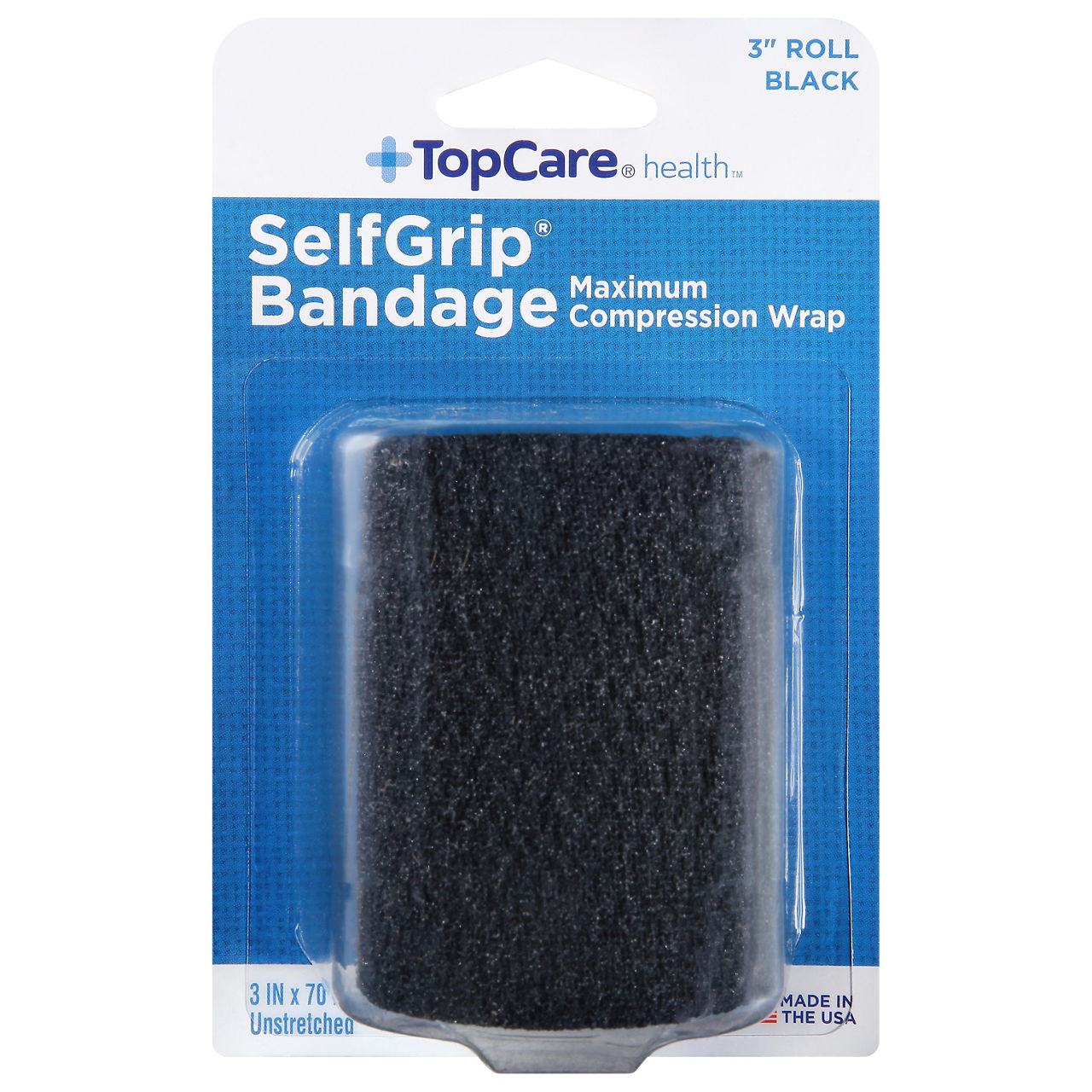 Maximum compression wrap. Unstretched. TopCare SelfGrip bandage is a self-adhering performance compression wrap designed to offer maximum support and firm compression to ligaments, tendons and muscles. It is also designed to increase blood flow to muscles and to reduce swelling and stiffness, before, during and after activity. TopCare SelfGrip Bandage's cotton woven technology allows it to adhere securely to itself without the use of pins or clips. Additionally, TopCare SelfGrip bandage does not...