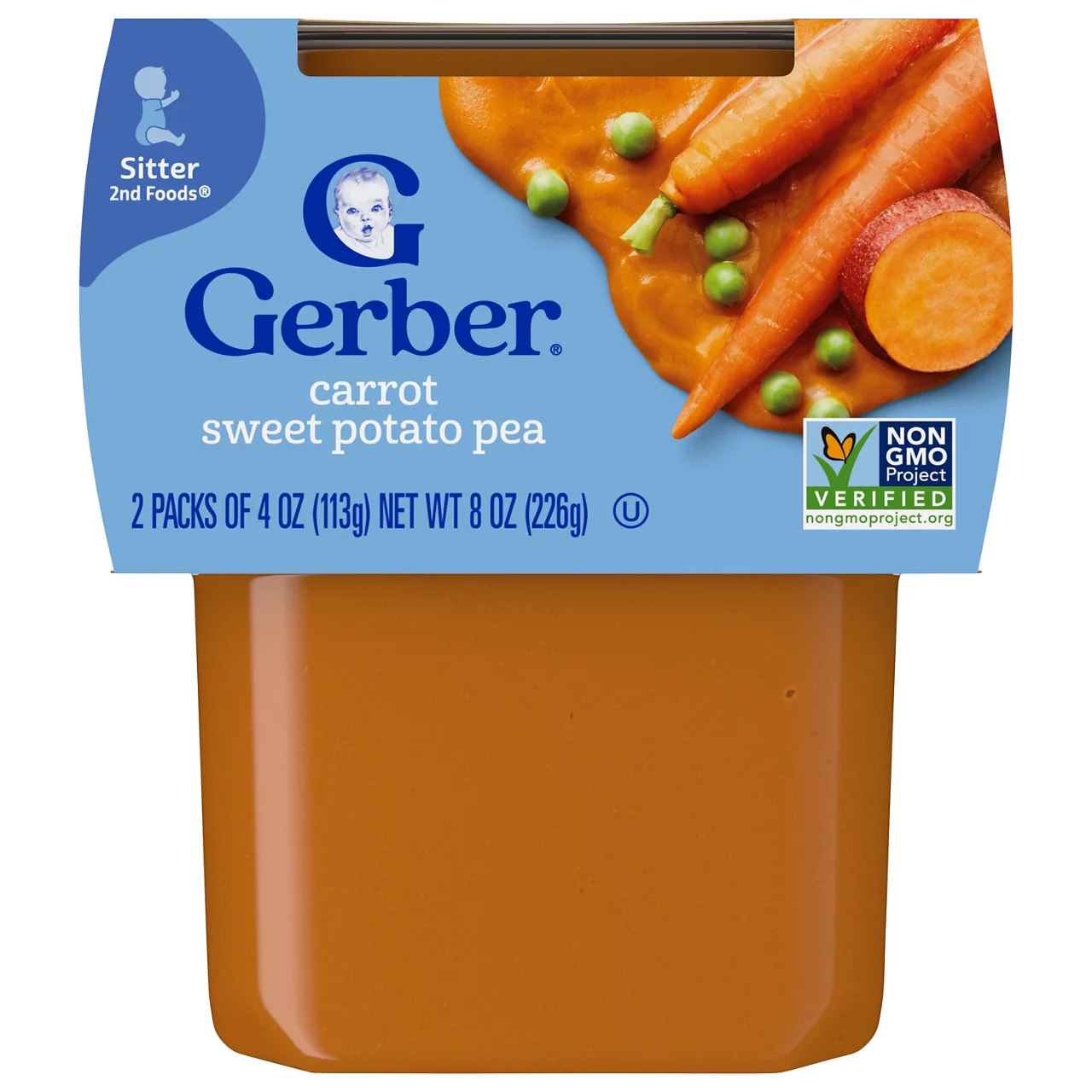 Gerber Natural for Baby Carrot Sweet Potato Pea, Veggie Power, Sitter 2nd Foods, 2 Pack