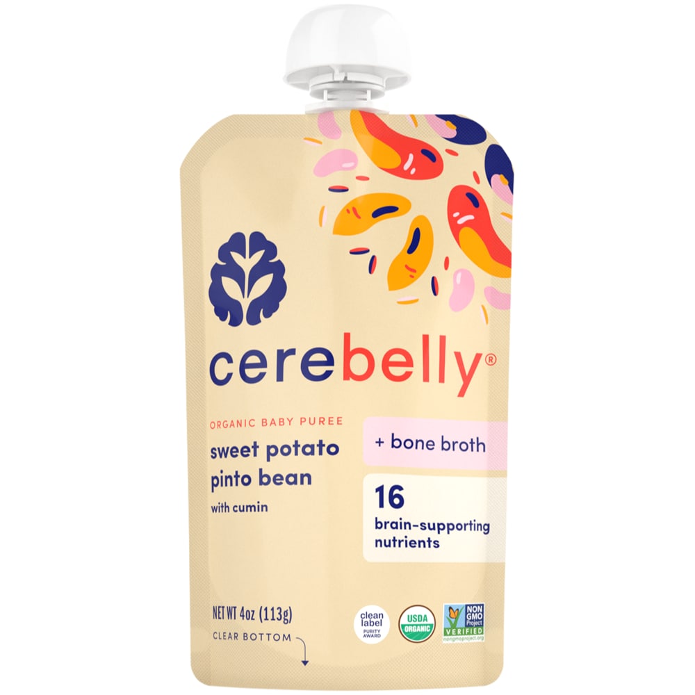 Cerebelly Baby Food Pouches – Sweet Potato Pinto Bean + Chicken Bone Broth - Healthy Kids Snacks - Veggie Purees - 16 Brain-supporting Nutrients from Superfoods, No Added Sugar