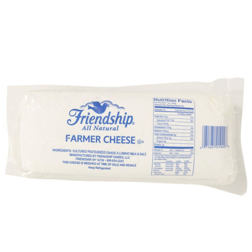 Shullsburg Creamery Farmers cheese is one of the most versatile cheeses you can buy. Farmer has a very mild and buttery flavor which lends itself well to almost any application. The mild flavor and smooth creamy texture make it the perfect cheese for snacking, slice and serve with crackers or add to your charcuterie tray. This cheese is also perfect to use in casseroles or any of your recipes calling for a mild cheese. Shullsburg Creamery Farmer Cheese, 11 oz., keep refrigerated. Contains milk, egg...