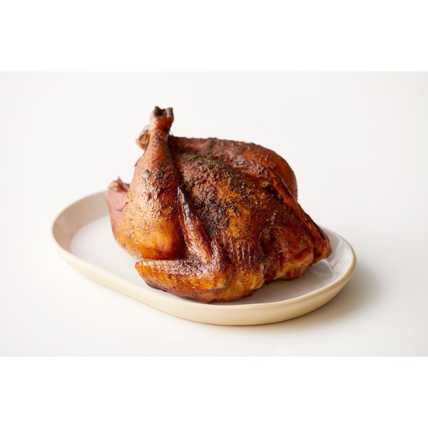 Spatchcock Chicken (Whole Split Chicken with Bone and Skin), Citrus Brine (Mojo Marinade [Water, Orange Juice, Brown Sugar, Salt, Lime Juice], Dry Vinegar, Rosemary Extract [Maltodextrin, Rosemary Oleoresin]), Herb Sauce (Extra Virgin Olive Oil, Garlic [Water, Garlic], Parsley, Rosemary, Oregano, Basil), Orange Slices.
