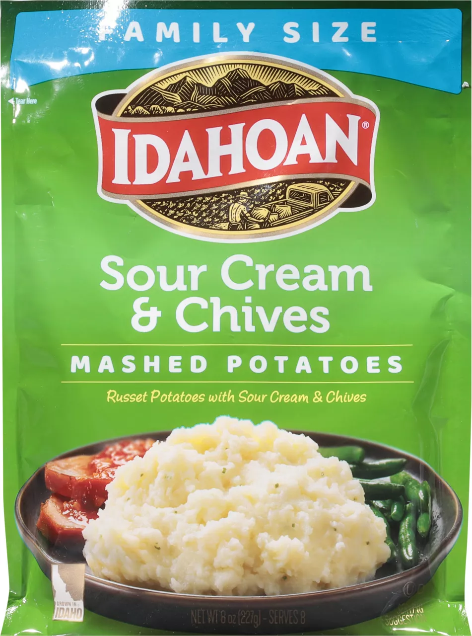 Potatoes, Whole Milk, Water, Cultured Sour Cream [Skim Milk, Cream, Whey, Food Starch- Modified, Sodium Phosphate, Guar Gum, Carrageenan, Sodium Citrate, Locust Bean Gum, Cultures, Potassium Sorbate (Preservative)], Butter (Cream, Salt), Margarine (Soybean Oil, Water, Vegetable Mono & Diglycerides, Salt, Natural Flavor (Includes Milk), Vitamin A Palmitate Added, Vitamin D3), Natural Flavors, Salt, Contains 1/2% or Less of the Following: Chives, Disodium Pyrophosphate (Added to Maintain Color), Potassium Sorbate and Sodium Bisulfite (Added to Maintain Freshness).