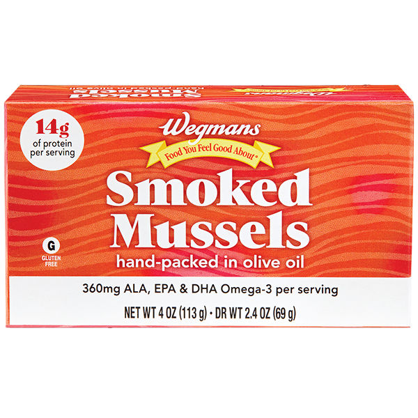 These plump canned mussels offer a savory taste of coastal Spain and Portugal. Smoked over bay wood and packed with extra-virgin olive oil and mussel broth, theyâre great as a snack out on the trail or pulled out of your kitchen pantry for a fast pasta or salad at home. Theyâre a delicious source of protein, iron and vitamin B-12.* Whatâs more, mussels improve both water quality and aquatic ecosystems as they grow, and provide a model of restorative ocean farming.