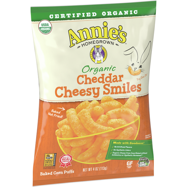 Annie's Organic Cheddar Cheesy Smiles, Baked Corn Puffs, Gluten Free