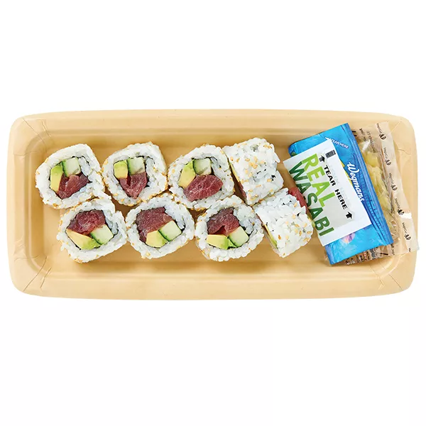- - *MADE WITH NO GLUTEN-CONTAINING INGREDIENTS - - Keep Refrigerated. - - Ingredients: Water, Tuna (Tuna, Water, Sodium Carbonate, Sodium Bicarbonate, Maltose, Trisodium Citrate, Sodium L-Ascorbate), Rice, Cucumber, Mayonnaise (Soybean Oil, Water, Salted Egg Yolks [Egg Yolk, Salt], Sugar, Distilled Vinegar, Salt, Lemon Juice Concentrate, Xanthan Gum, Egg Powder, Paprika Oleoresin [for color]), Sugar, Scallions, Sriracha Sauce (Jalapenos, Vinegar, Sugar, Salt, Garlic Powder, Water, Xanthan Gum, Citric Acid), Capelin Roe, Seaweed, Sesame Seeds, Salt, Rice Vinegar, Ketchup (Tomato Concentrate, Sugar, Distilled Vinegar, Salt, Contains 2% or less of each: Onion Powder, Spices, Natural Flavor), Organic Tomato Puree (Water, Organic Tomato Paste), Distilled Vinegar, Soybean Oil, Glucono Delta Lactone, Garlic Puree (Garlic, Citric Acid), Agave, Lemon Juice Concentrate, Annatto, Seasoning (Glucose Syrup, Water, Rice Extract [Rice, Alcohol, Salt, Citric Acid, Koji {Microbial Enzyme}, Sugar, Vinegar, Phosphoric Acid, Cane Molasses]), Organic White Vinegar, Sesame Oil, Spice, Natural Flavor, Yeast Extract, Organic Onion Powder, Organic Spices. If Brown Rice, also Quinoa. Also Contains: Gluten Free Soy Sauce, Wasabi and Ginger. CAUTION: May contain bone fragments.
