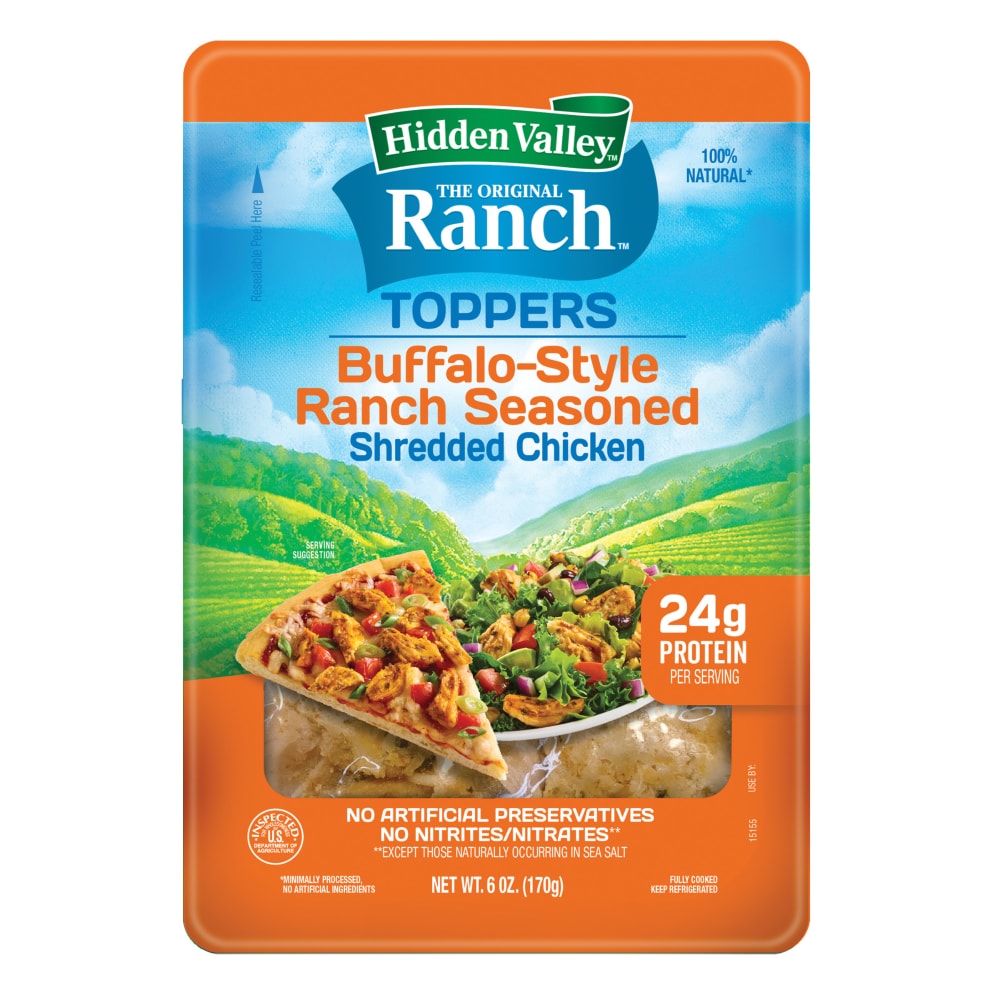 Chicken (White Chicken Meat, Water, Modified Food Starch [Corn], Salt, Sodium Phosphate), Hot Buffalo Sauce (Water, Maltodextrin, contains 2% or less of the following: Modified Food Starch [Corn], Sunflower Oil, Vinegar, Hot Sauce Powders [Aged Cayenne Red Peppers, Vinegar, Salt, Garlic], Paprika, Salt, Spices, Xanthan Gum, Yeast Extract, Garlic Powder, Citric Acid, Natural Flavors, Oleoresin Paprika, Sodium Diacetate)