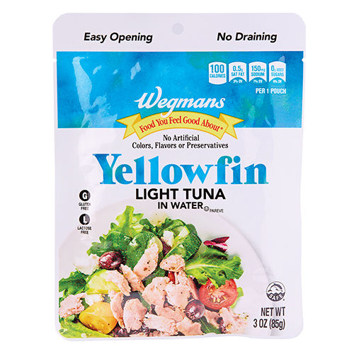 Yellowfin tuna packed in extra virgin olive oil. This pouch is full of flavor and packed with nutrition! The omega-3s in tuna combined with the rich taste of extra virgin olive oil make this product a natural fit for your favorite recipes.*Tuna is naturally high in protein