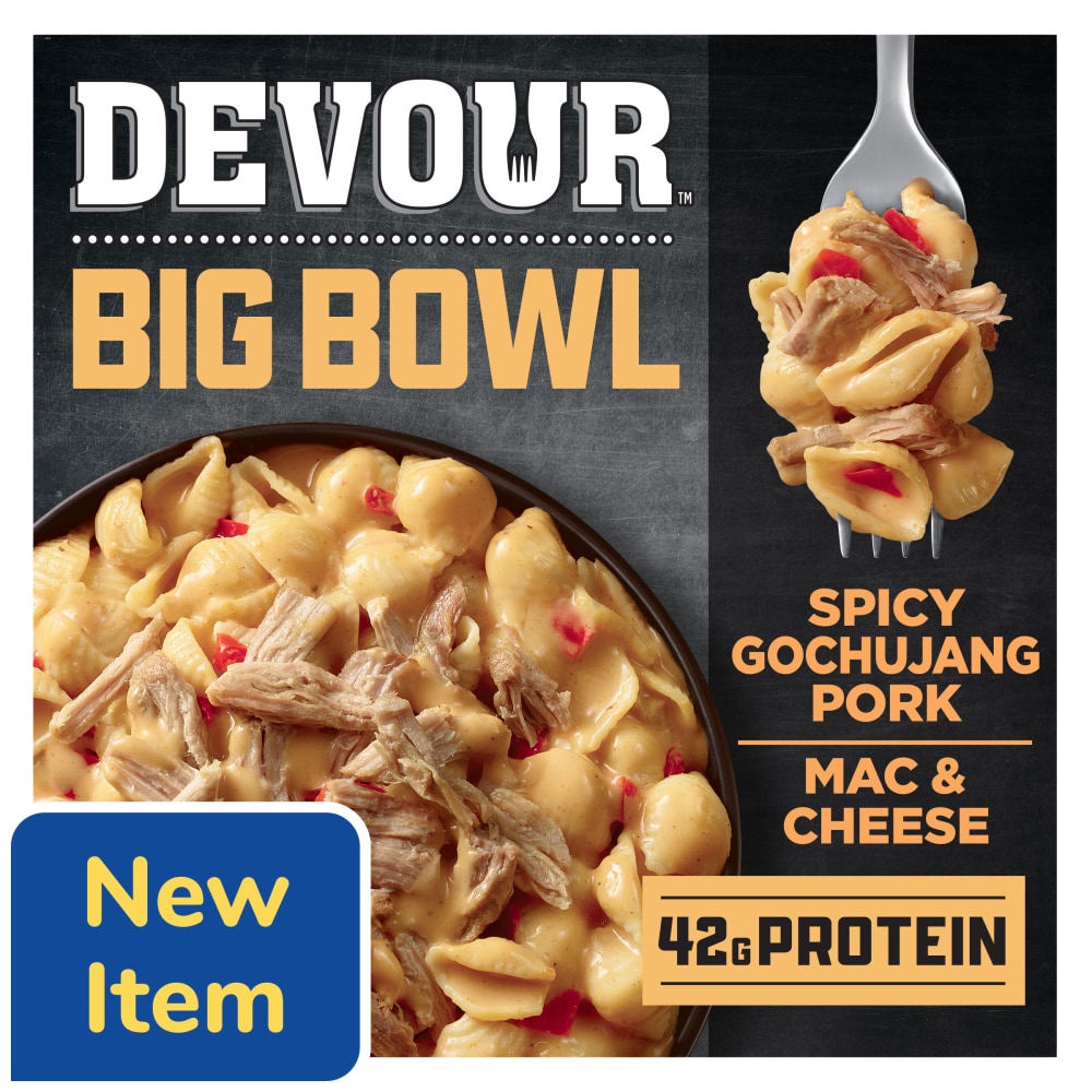 Cooked Pasta (Water, Semolina Wheat Flour, Wheat Gluten), Skim Milk, Cooked Fire Roasted Applewood Smoke Flavored Pork, Water and Binder Product, Natural Smoke Flavoring Added (Pork, Water 2% or Less of Rice Starch, Dextrose, Sugar, Sea Salt, Brown Sugar, Sodium Phosphate, Onion Powder, Garlic Powder, Carrageenan, Natural Flavor, Natural Applewood Smoke Flavor), Cheddar Cheese (Cultured Milk, Salt, Enzymes, Annatto Color), Water 2% or Less of Catsup (Tomato Concentrate [Water, Tomato Paste], Sugar, Vinegar, Sea Salt, Spices Dried Onion, Natural Flavors, Dried Garlic) Modified Cornstarch, Cream, Tomato Puree (Water, Tomato Paste), Brown Sugar, Worcestershire Sauce (Vinegar, Molasses, Water, Tamarind, Natural Flavor, Sugar, Salt, Onion, Garlic), Apple Cider Vinegar, Salt, Spices Soybean Oil, Butter (Cream, Salt), Pineapple Juice Concentrate, Chili Pepper, Honey, Molasses, Garlic Powder, Potassium Chloride.