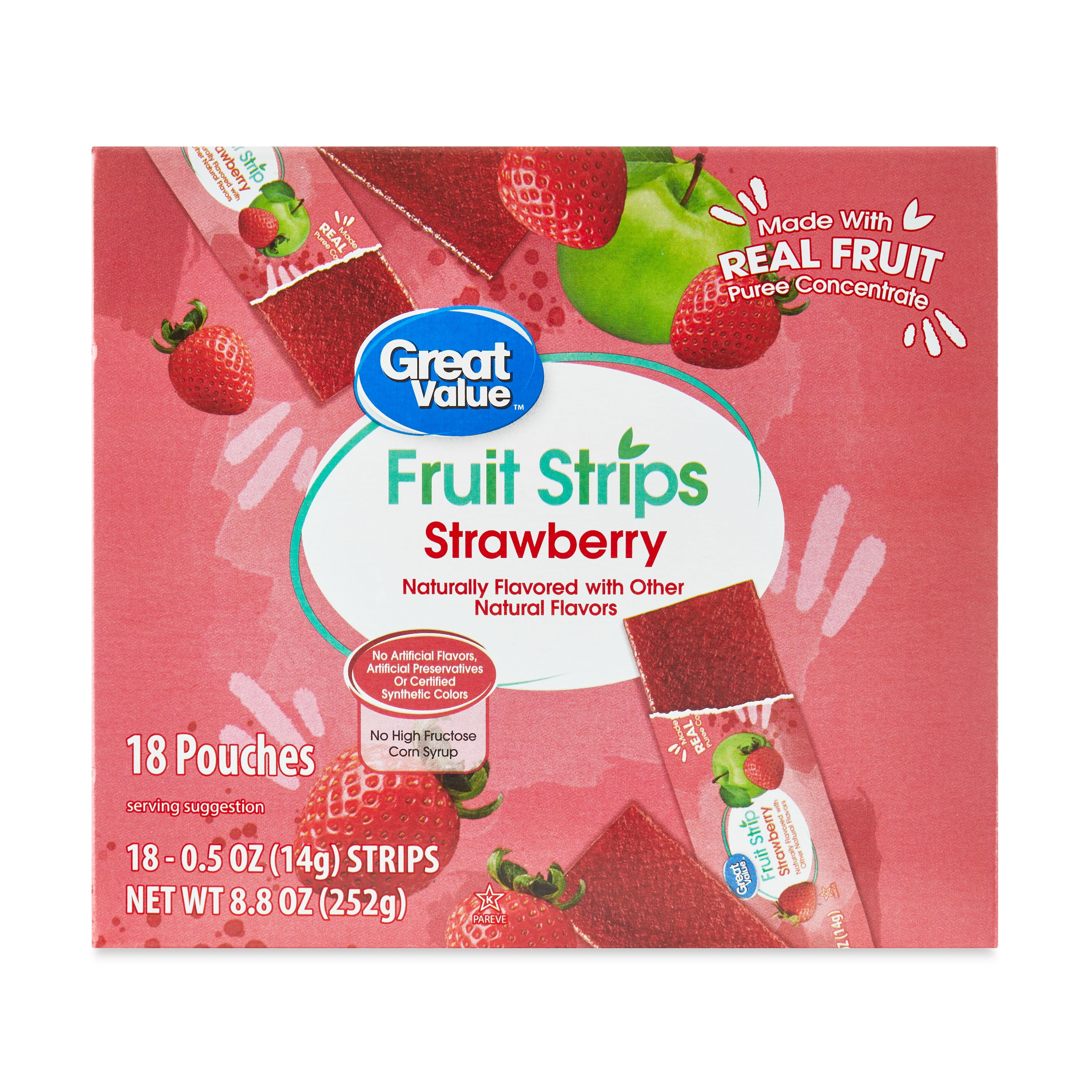 Whether they're headed to school or on a special field trip, complete their lunch with the Strawberry Fruit Strips from Good & Gatherâ¢. Made with real fruit puree concentrate, these fruit-flavored snacks don't contain artificial flavors or certified synthetic colors, making them a great snack you can add to your kiddo's daily routine. The individual wrapping makes it easier than ever to add these snacks to their backpack before they leave for the day. They're sure to enjoy the sweet and fruity...