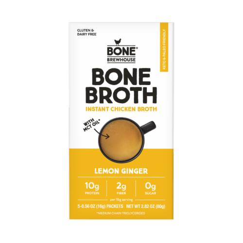 Bone Brewhouse - Chicken Bone Broth Protein Powder - Lemon Ginger Flavor - Keto & Paleo Friendly - Instant Soup Broth