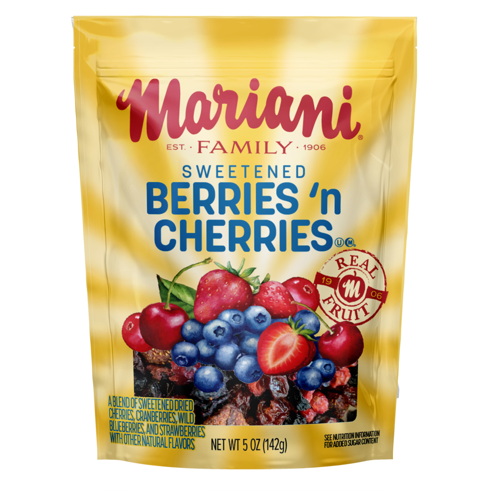 Sun-Maid® Mixed Berries. Savor the wonderful combination of deliciously sweet & tart flavors of dried cranberries, blueberries, and Bing cherries. They are sure to become a sharable favorite. Satisfy your taste buds with a guilt-free snack that is Non-GMO and has no artificial flavors. Enjoy them as a delicious snack that can be eaten by them self or with other create snacks and recipes: salads, trail mix, charcuterie, yogurt, oatmeal & cereal and cookies, muffins & deserts.
