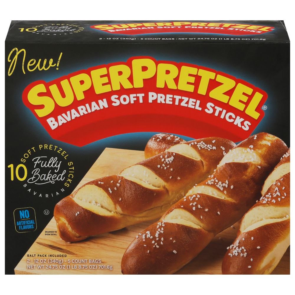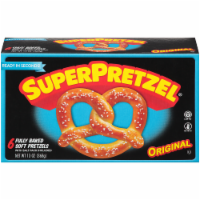 Fat free Kosher certified Contains no high fructose corn syrup Salt packet included Designed for ultimate ease, these frozen pretzels can be heated in seconds in the microwave, providing consumers with a warm, comforting snack that fits seamlessly into their busy lifestyles without the need for extensive preparation or baking time SUPERPRETZEL® Original Soft Pretzels boast a traditional stadium-style flavor, striking an ideal balance between saltiness and the deep, yeasty savoriness of soft pretzel bread, satisfying cravings for a timeless and universally loved snack This product comes in a pack containing six pretzels, perfect for sharing at gatherings, serving as a family-friendly snack option, or keeping your freezer stocked for whenever the desire for a deliciously warm pretzel strikes