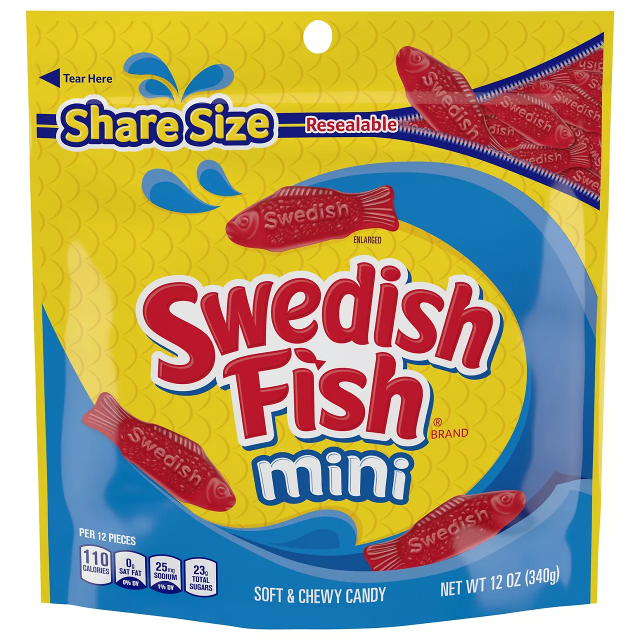 One 8 oz bag of SWEDISH FISH Soft & Chewy Candy Classic SWEDISH FISH fruit candy floods your mouth with flavor A fun fish-shaped gummy candy Stash this sweet candy in lunchboxes, purses and backpacks Perfect chewy snacks for party favors, holiday candy and movie theater candy Our mission at Mondelēz International is to create more moments of joy and build the best snacking company in the world by growing our people, growing our business and growing our impact on the world around us