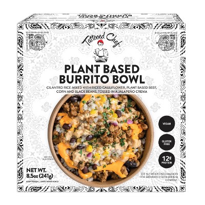 Vegan Crumbles (Water, Pea Protein, Coconut Oil, Rice Flour, Coconut Aminos [Coconut Syrup, White Cane Vinegar, Salt], Molasses, Chili Powder [Spices {Including Chili Peppers}, Paprika, Salt, Garlic], Tomato Powder, Cocoa Powder, Onion Powder, Cumin, Garlic Powder, Black Pepper, Natural Smoke Flavor), Riced Cauliflower (Cauliflower, Salt), Cooked White Rice (Water, White Rice), Black Beans (Black Beans, Water, Salt), Corn, Cheddar Cheese Alternative (Water, Coconut Oil, Modified Food Starch, Chickpea Protein, Tapioca Maltodextrin, Natural Flavor, Salt, Yeast Extract, Apocarotenal and Beta Carotene [Color]), Sour Cream Alternative (Water, Coconut Oil, Tapioca Flour, Pea Protein, Dextrose, Cornstarch, Tricalcium Phosphate, Sea Salt, Sunflower Lecithin, Lactic Acid [Vegan], Natural Flavor, Vitamin A Palmitate, Vitamin D2, Vitamin B-12, Cultures), Vegan Cream Cheese (Water, Coconut Oil, Modified Food Starch, Less than 2% of the Following: Chickpea Protein, Salt, Sodium Citrate, Citric Acid, Guar Gum, Xanthan Gum, Nutritional Yeast, Natural Flavor, Yeast Extract, Sunflower Oil, Cultured Dextrose, Maltodextrin, Sugar), Water, Jalapeno, Red Onion, Jalapeno Juice, Cilantro, Chili Powder.