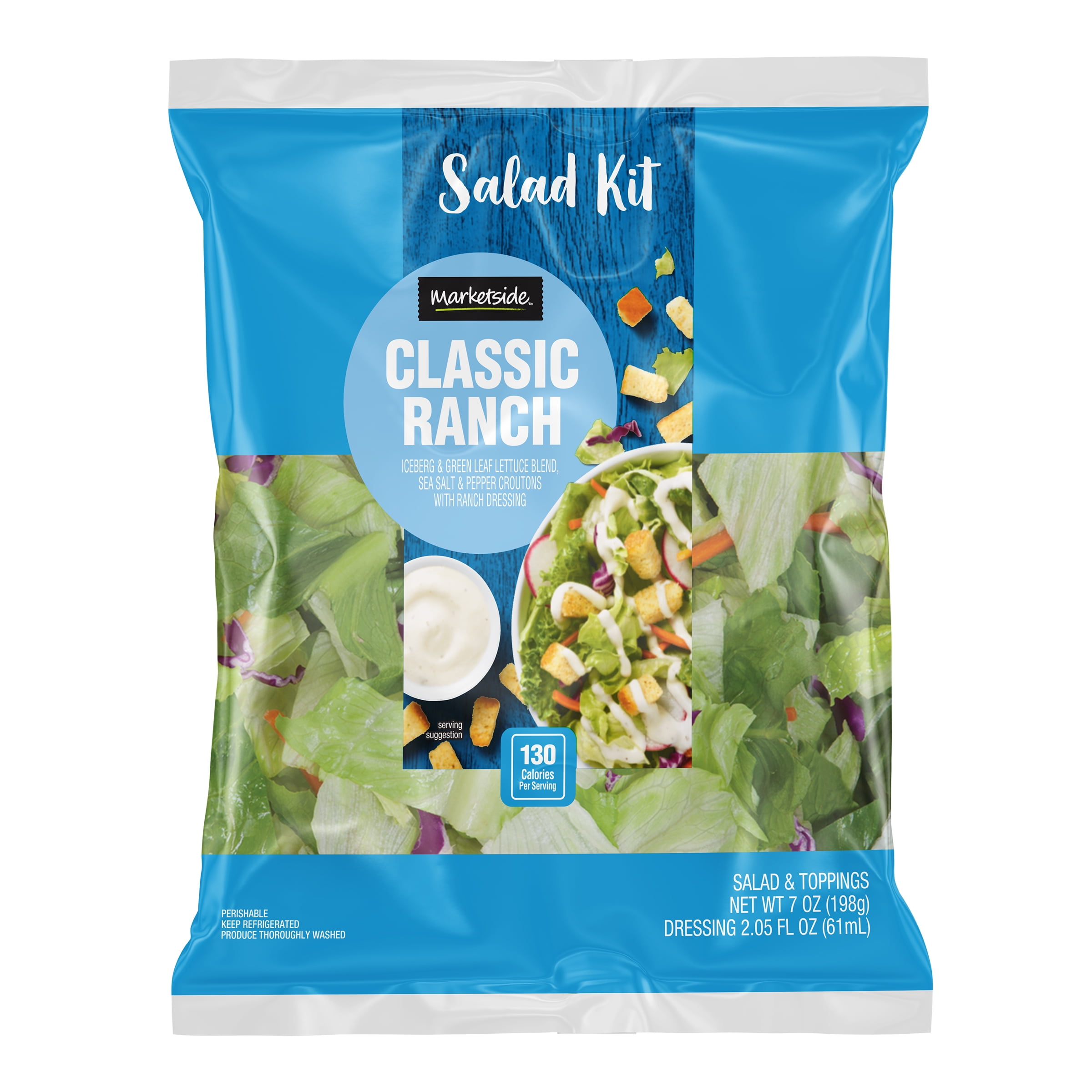 ingredients: green goddess ranch dressing (soybean oil, cultured lowfat buttermilk, basil, sour cream [cultured nonfat milk, cream], water, egg yolks, distilled vinegar, salt, contains less than 2% of sugar, spices, lactic acid, xanthan gum, mustard seed, natural flavors [includes milk], dehydrated garlic, dehydrated green onion, dehydrated onion, fruit juice [color], oleoresin turmeric [color]), cabbage (red cabbage, savoy cabbage), green leaf lettuce, broccoli, carrot, cheese and garlic crouton crumbles (enriched flour [wheat flour, malted barley, niacin, iron, thiamin mononitrate, riboflavin, folic acid], sunflower oil [sunflower oil, rosemary extract {to maintain freshness}], cheddar cheese garlic seasoning [cheese powder {cheddar cheese (milk, salt, cultures, enzymes), whey}, salt, garlic powder, yeast extract, natural flavors, citric acid, parsley, spice, maltodextrin], wheat flakes, palm oil (responsibly sourced palm oil), sea salt, cane sugar, yeast), green onion.