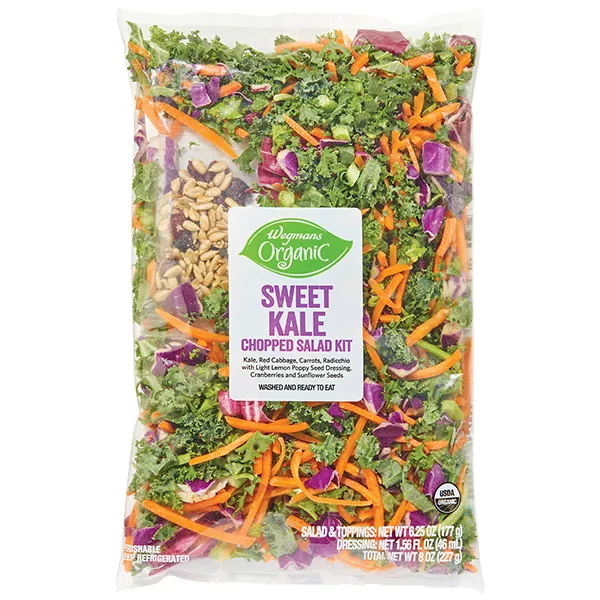 Packed with superfoods such as kale, broccoli, Brussels sprouts, radicchio, cranberries and pumpkin seeds, this kit offers a sweet and savory flavor combination hearty enough to be a main meal. Complement the creamy poppyseed dressing by adding grilled chicken or nutty quinoa to your salad. Tasty!