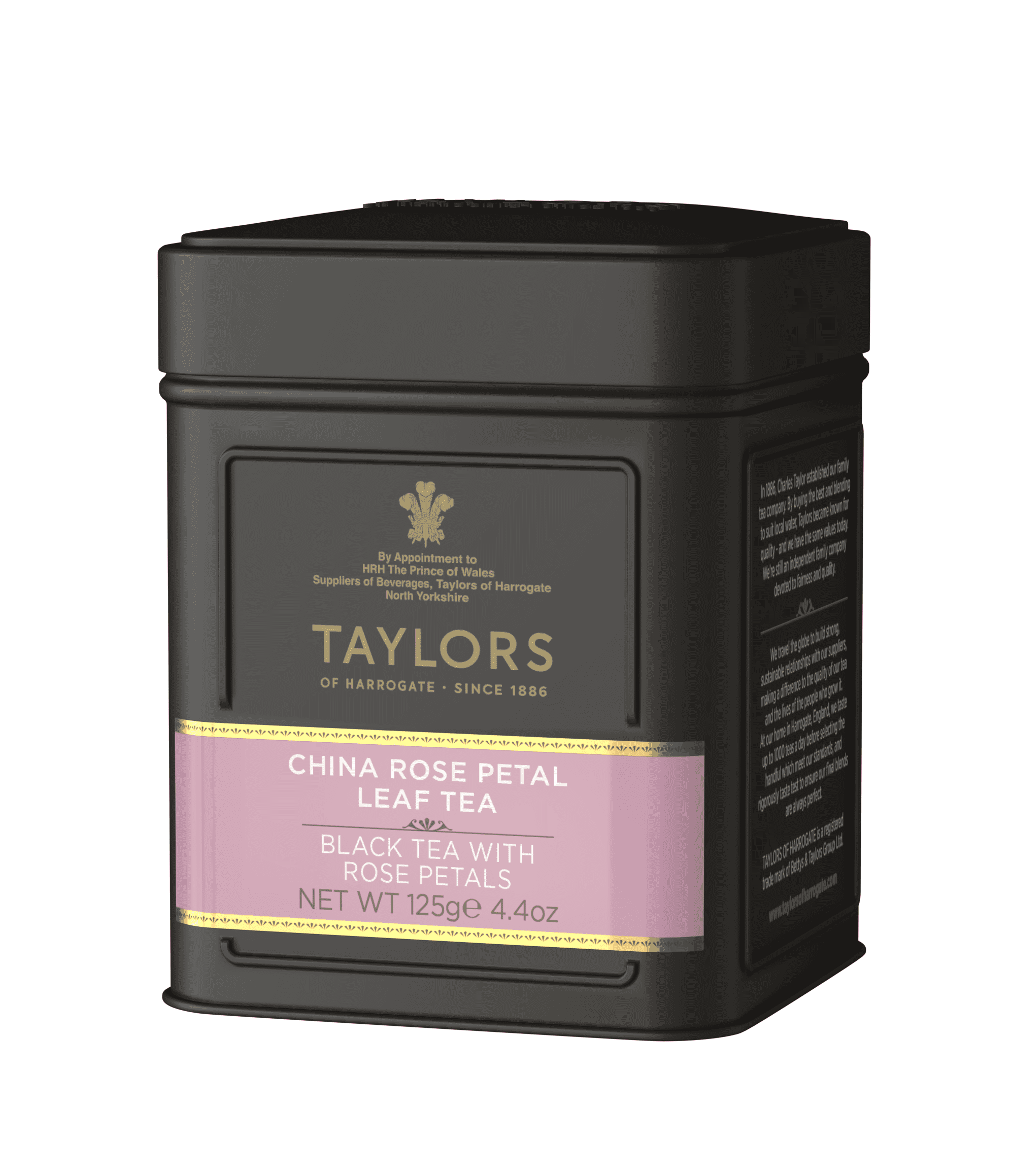 Taylors of Harrogate China Rose Petal Leaf Tea Tin, 4.4 Oz a gentle and rounded black tea that supports without dominating. Fragrant, delicate and floral. Taylors of Harrogate is Carbon Neutral Certified, a member of the Ethical Tea Partnership, and Rainforest Alliance Certified.