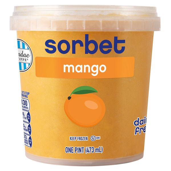 Sorbet, Mango, Farm Crafted 70 calories per pint. Dairy, gluten & fat free. Bioengineered. No sugar added. Farm crafted with misfit fruit. Small farm, big mission. Rooted in the tradition of our third generation farm, The Frozen Farmer makes naturally indulgent frozen confections from our own family recipes. Crafted from sustainable, upcycled ingredients for a taste that's full of flavor, not fat and sugar, for an indulgent treat you can feel good about.. Facebook. Instagram. (at)TheFrozenFarmer. Woman owned business.