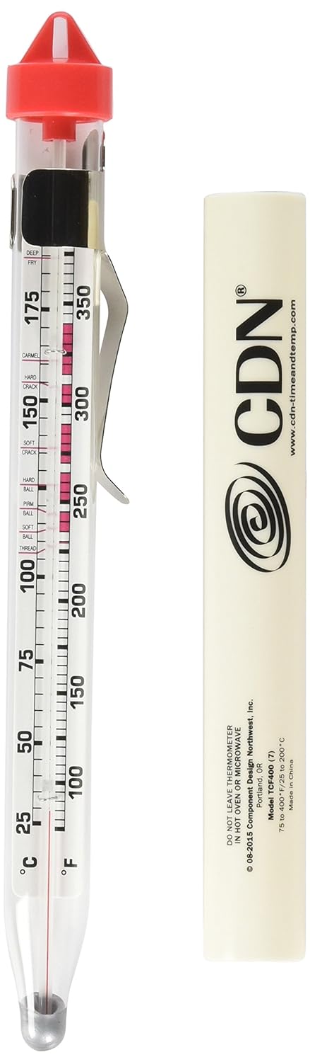 The Taylor Candy/Jelly Deep Fry Thermometer features large, easy-to-read temperature zones, a spirit-filled glass thermometer tube and common temperatures etched into the casing. With a range up to 400F, or 200C, this durable stainless steel product helps ensure that your recipes come out right because you are cooking foods at the correct temperature. Safe for the dishwasher, this Taylor kitchen thermometer is a must-have for your cooking needs.