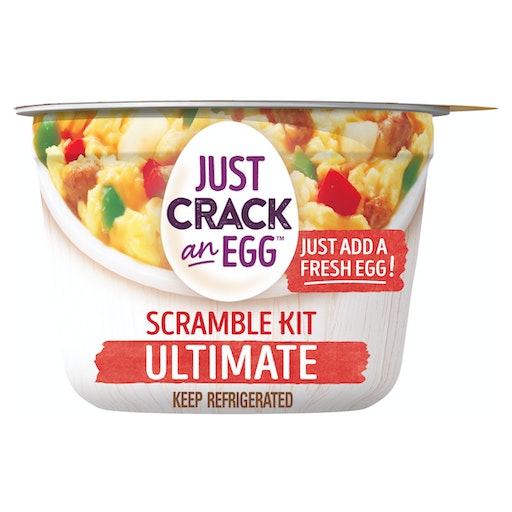 Just Crack an Egg Ultimate Scramble Breakfast Bowl Kit with Pork Sausage, Mild Cheddar Cheese, Potatoes, Onions, and Green and Red Peppers