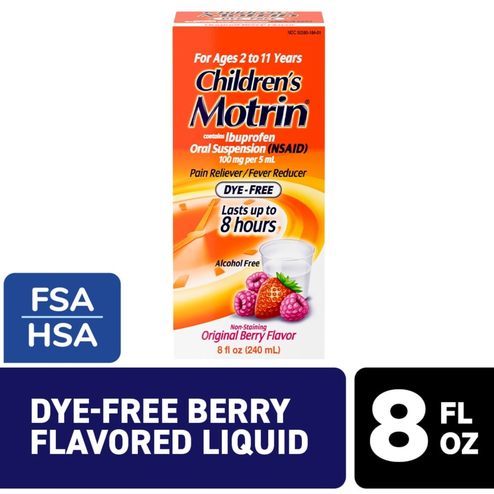 In Each Chewable Tablet: Active Ingredients: *Ibuprofen (NSAID) (100 mg), Pain Reliever/Fever Reducer. Inactive Ingredients: Acesulfame Potassium, Ammonium Glycyrrhizin, Aspartame, Carnauba Wax, Croscarmellose Sodium, FD&C Yellow No. 6 Aluminum Lake, Hypromellose, Magnesium Stearate, Mannitol, Natural and Artificial Flavors, Silicone Dioxide, Sodium Lauryl Sulfate, Soybean Oil, Succinic Acid. *Nonsteroidal anti-inflammatory drug.