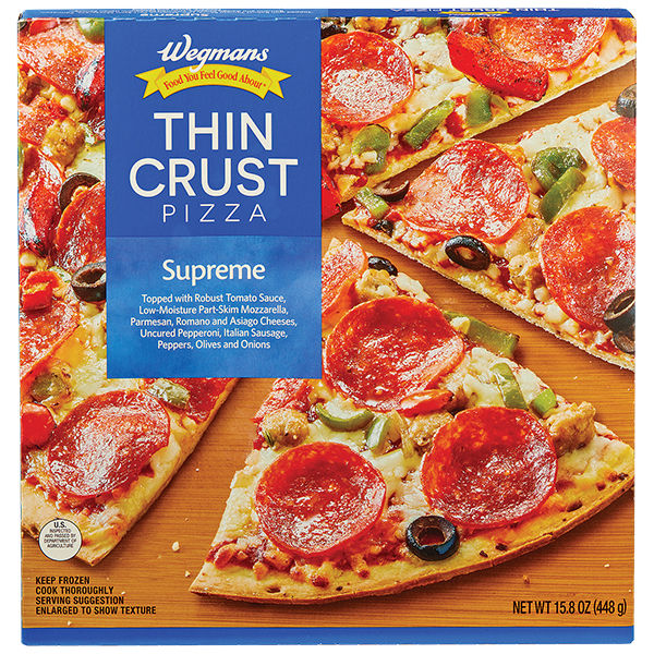 Ingredients: Enriched Flour (wheat flour, niacin, ferrous sulfate, thiamin mononitrate, riboflavin, folic acid), Water, Imitation Mozzarella Cheese (water, vegetable oil, modified food starch, potato starch, gelatin, rennet casein, modified whey. Contains less than 2% of: citric acid, potassium chloride, potassium sorbate [preservative], salt, sodium aluminum phosphate, sodium citrate, sodium phosphate, titanium dioxide [artificial color]), Tomato Puree (water, tomato paste), Cooked Chicken Pizza Topping Pork Added (sausage made with chicken pork added [mechanically separated chicken, pork, salt, spices, corn maltodextrin, caramelized sugar, dextrose, natural flavors], water, soy protein concentrate, textured vegetable protein [soy flour, caramel color], sodium phosphates), Vegetable Oil, Pepperoni Seasoned Pork, Chicken, and Beef Pizza Topping (pork, mechanically separated chicken, water, soy protein concentrate, salt, contains 2% or less of: pepperoni [pork, mechanically separated chicken, beef, salt, contains 2% or less of: spices, dextrose, pork stock, lactic acid starter culture, oleoresin of paprika, flavoring, sodium ascorbate, sodium nitrite, BHA, BHT, citric acid], spices, dextrose, oleoresin of paprika, sodium ascorbate, garlic powder, natural flavors, maltodextrin, sodium nitrite, lactic acid starter culture, BHA, BHT, citric acid), Rehydrated Mozzarella Cheese (water, part skim milk, salt, cultures, enzymes). Contains less than 2% of: Onion, Green Sweet Pepper, Modified Food Starch, Yeast, Sugar, Salt, Defatted Soy Flour, Dextrose, Spice, Monocalcium Phosphate, Baking Soda, Citric Acid, Malic Acid, Xanthan Gum, Maltodextrin, Annatto Extract (color), L-Cysteine Hydrochloride (dough conditioner), TBHQ (preservative), Natural Flavor.