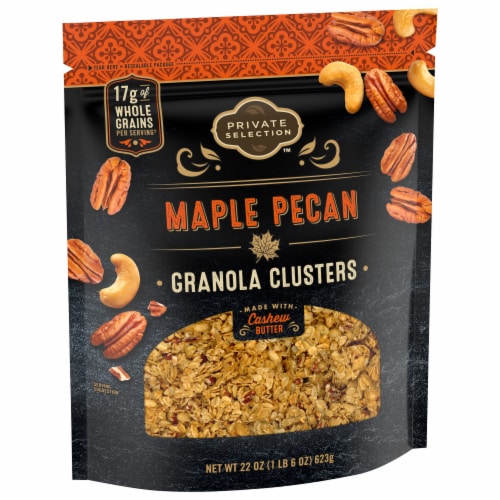 WHOLE ROLLED OATS, MILLED CANE SUGAR, VEGETABLE OIL (CANOLA AND/OR SAFFLOWER AND/OR SUNFLOWER OIL). RICE FLOUR, PECANS, MAPLE SYRUP, CORNSTARCH, HONEY, SALT, BARLEY MALT SYRUP, NATURAL FLAVOR.