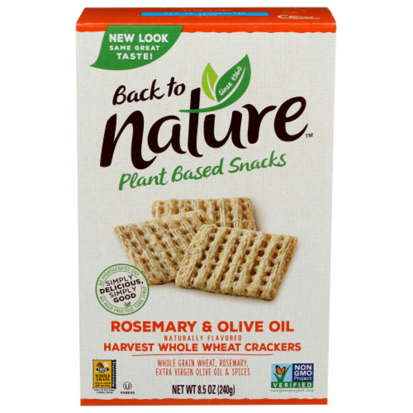 Triscuit Rosemary & Olive Oil Whole Grain Wheat Crackers are made simply with quality ingredients. Baked to perfection, these snack crackers use 100% whole grain wheat proudly grown in the USA and sunflower oil. These crackers have their signature woven texture, are Kosher, Non-GMO, have no artificial colors or flavors and are a good source of dietary fiber (see nutritional information for fat content).