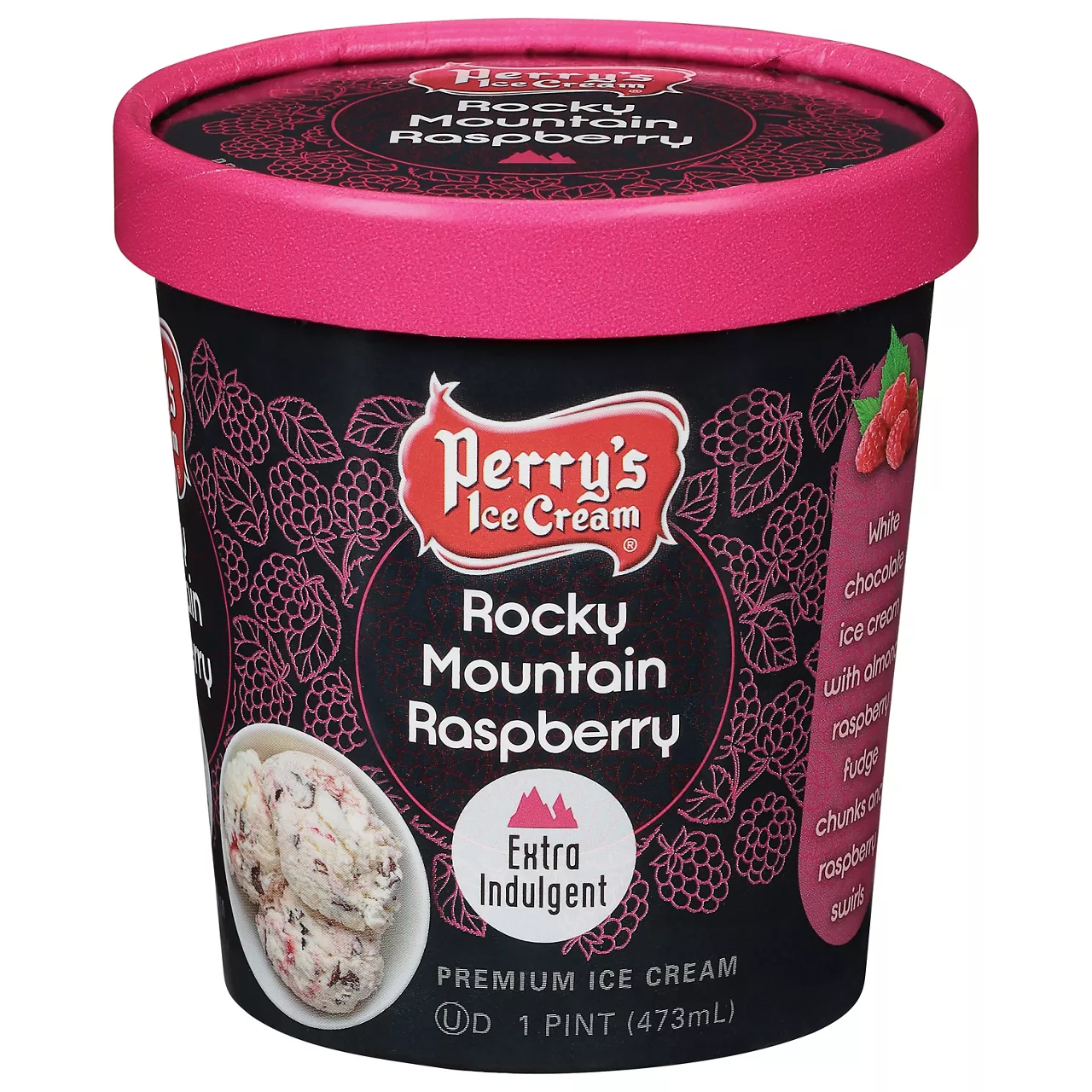 Milk, Cream, Corn Syrup, Sugar, Raspberry Puree (Corn Syrup, Sugar, Black and Red Raspberries, Water, Natural Flavors, Citric Acid, Guar Gum, Carrageenan, Red 40, Blue 1), Whey, Nonfat Milk, Cellulose Gel, Cellulose Gum, Mono & Diglycerides, Carrageenan.