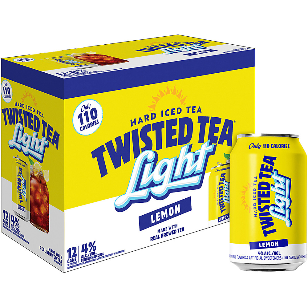 Twisted Tea Light Hard Iced Tea, 12 Pack, 12 Fluid Ounces Cans 12 Fluid Ounce Cans Favorite beverage for race tracks, country music festivals and tailgate parties Refreshing, hard iced tea with a twist of natural lemon flavor Serve it chilled for maximum refreshment 4% ABV Available year-round: Enjoy anytime, anywhere Goes well with barbecue meats and seafood Light Hard Iced Tea