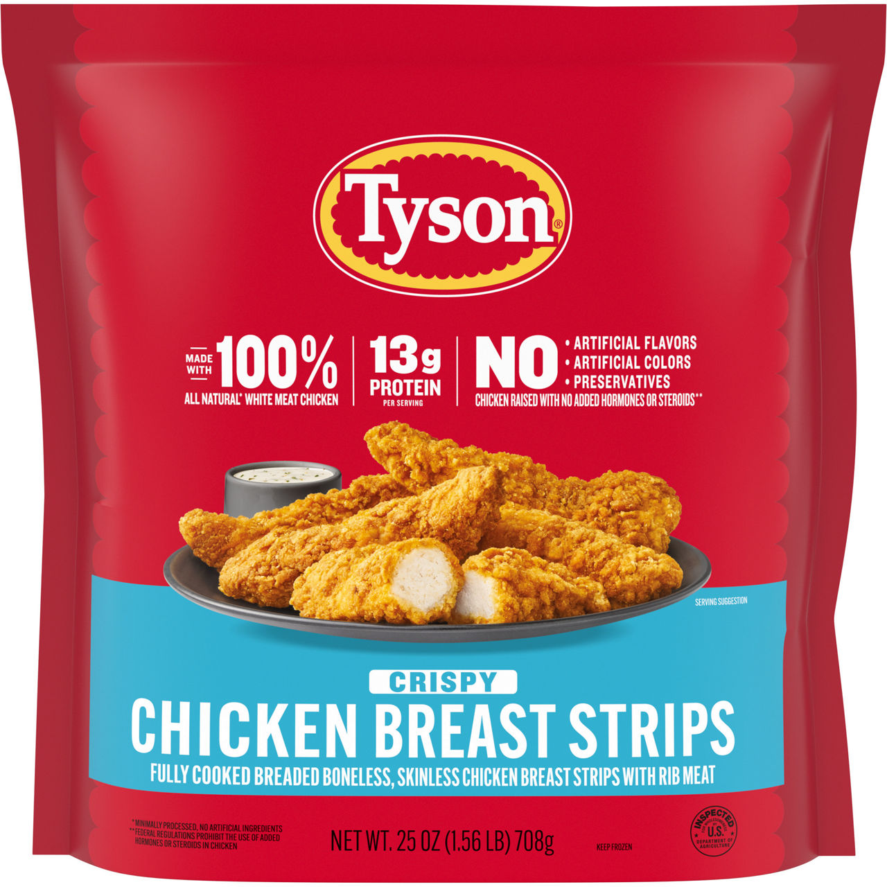One 25 oz package of Tyson Fully Cooked Southern Style Chicken Breast Tenderloins All natural*, minimally processed chicken Fully cooked chicken tenderloins with 13 grams of protein per serving This Southern Style chicken is fully cooked and ready to eat Keep fully cooked, ready to eat Southern Style chicken frozen until ready to cook, then heat and serve as part of convenient family dinner Resealable bag for easy storage