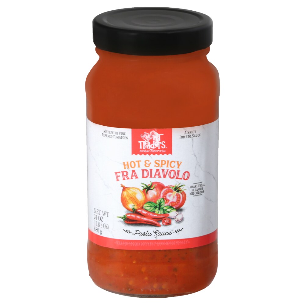 One 24 ounce jar of Victoria Fradiavolo Pasta Sauce Made with 100% imported Italian tomatoes, onions, fresh garlic, olive oil, basil, sea salt and crushed red pepper, for a truly homemade taste This spicy sauce is perfect for your favorite pasta, pizza, Italian-style meatballs, chili and panini recipes Spicy Italian tomato sauce made with premium ingredients; no preservatives, no water and no paste Shake this Italian pasta sauce jar well before using and refrigerate after opening for lasting freshness