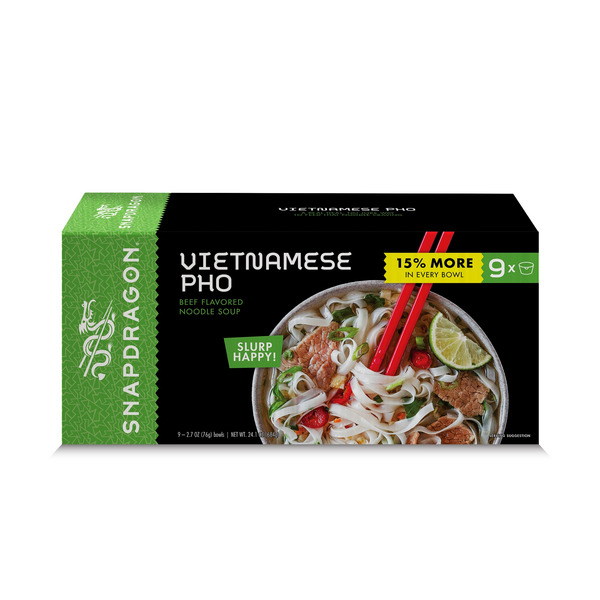 Rice noodles (rice, tapioca starch, sugar, salt, and cellulose gum), Soup base (salt, sugar, disodium inosinate and disodium guanylate, soy sauce powder [soy sauce (soybeans, salt, and alcohol), spice powders (spices, garlic, and onion), silicon dioxide (to prevent caking), artificial flavorings, citric acid, and caramel color), Flavoring oil (soybean oil, spice and onion extracts, flavorings and artificial flavorings, and coloring paprika), Vegetable pack (carrot, cabbage, green onion, onion, and coriander).