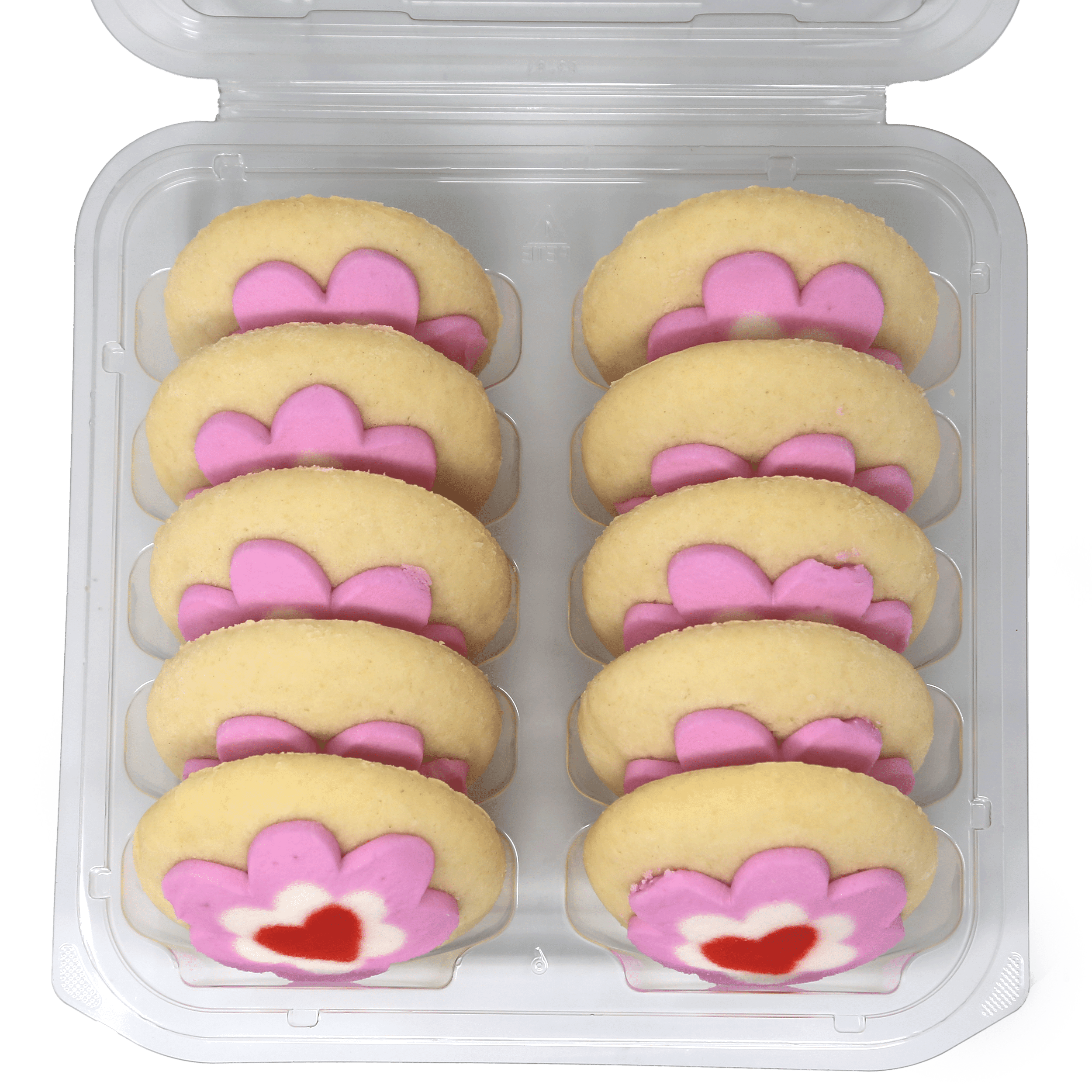 Celebrate Valentine's Day with Freshness Guaranteed Frosted Sugar Cookies. You will get 10 soft and moist sugar cookies that are topped with deliciously sweet, purple frosting. These sugar cookies are great for sharing with your valentine, serving to guests at your next party or get-together, bringing to a friend's house, sharing with co-workers, or enjoying as a sweet treat to indulge in on any day. You could also pair them with a glass of cold milk, a piping hot cup of coffee, or a scoop of ice...