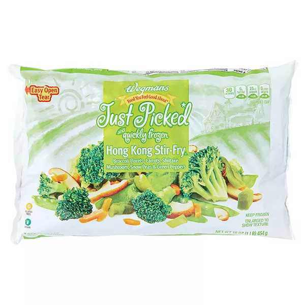 Broccoli florets, sugar snap peas, carrots, bok choy, and red peppers picked and quickly frozen to offer the freshest possible frozen vegetables to you and your family. Add a protein and your favorite Wegmans stir fry sauce to create a quick and delicious meal!Our Food You Feel Good About yellow banner is your shortcut to great-tasting products with no artificial colors, flavors or preservatives.