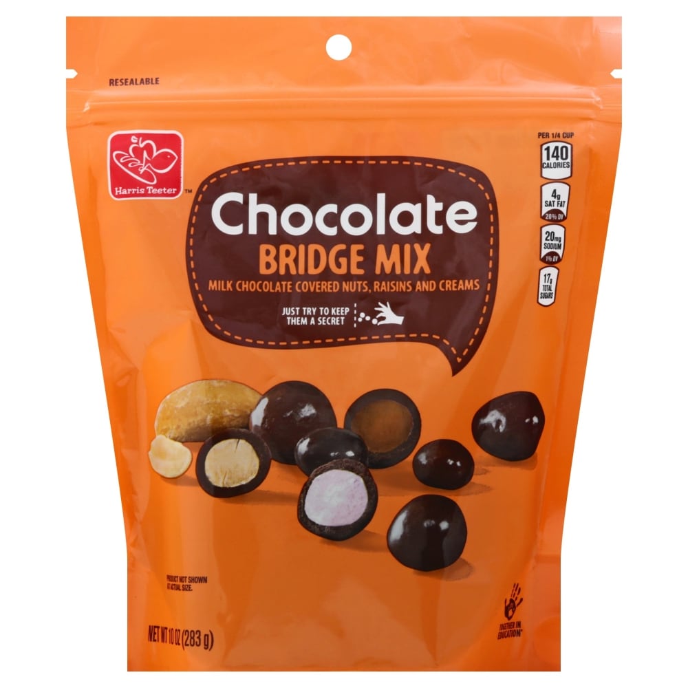Milk chocolate (sugar, cocoa butter, milk, chocolate liquor, soy lecithin ¿ an emulsifier, artificial flavoring, salt), semisweet chocolate (sugar, chocolate liquor, cocoa butter, milk fat, soy lecithin [emulsifier], artificial flavoring), peanuts, sugar, raisins, corn syrup, sweetened condensed milk (milk, skim milk, sugar), almonds, brazil nuts, hydrogenated vegetable oil (palm kernel and soybean oil), evaporated milk (vitamin d added), salt, invertase, natural and artificial flavoring, egg whites, citric acid, gum arabic, modified food starch, coconut oil, confectioner¿s glaze, artificial colors (fd&c: red #40 and blue #1), xanthan gum.