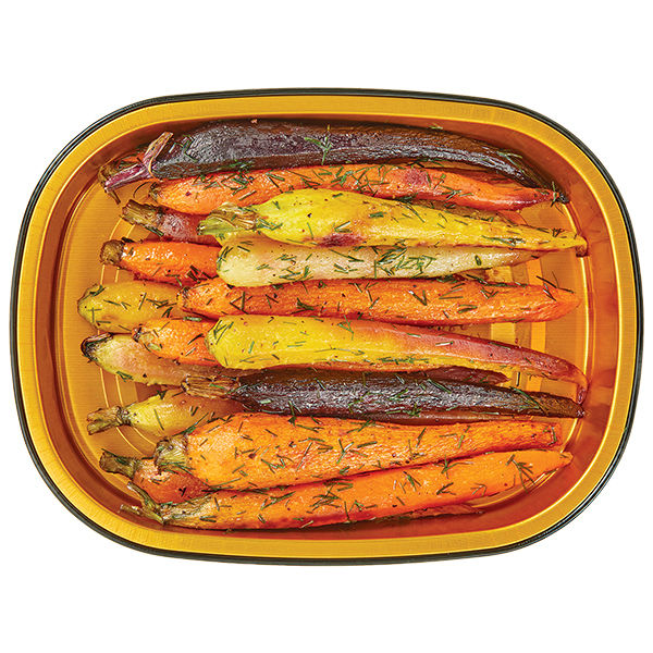 Perfectly roasted rainbow carrots seasoned with Kosher salt, white pepper, and fresh dill.