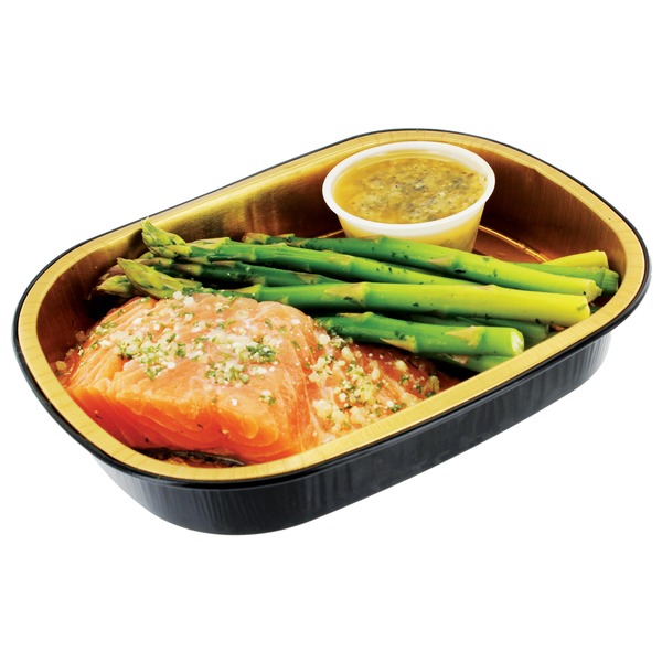 - - *MADE WITH NO GLUTEN-CONTAINING INGREDIENTS - -<strong> Ingredients: Farm-Raised Atlantic Salmon</strong> (color added to feed), <strong>Asparagus, Hollandaise Sauce </strong>(Water, Butter, Cream, Reconstituted Egg Yolk [Water, Powdered Egg Yolk], Shallots, White Wine, Modified Corn Starch, Salt, Concentrated Lemon Juice, Sugar, White Pepper, Hot Pepper), <strong>Lemon Dill Finishing Butter </strong>(Grade AA Butter [Cream, Salt], Roasted Garlic Puree, Dill, Lemon Juice Concentrate , Chablis Wine, Sea Salt, Cayenne Pepper, Dill Extract), <strong>Extra Virgin Olive Oil, Lemon Pepper Seasoning</strong> (Salt, Black Pepper, Dehydrated Onion, Granulated Sugar, Dehydrated Granulated Garlic, Ground Celery, Lemon Oil).